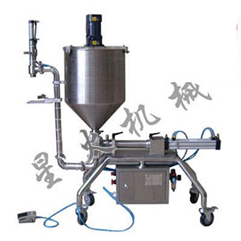 該攪拌式灌裝機特別適合顆粒醬料產(chǎn)品生產(chǎn)廠家設(shè)備選擇,立式結(jié)構(gòu),節(jié)省場地...